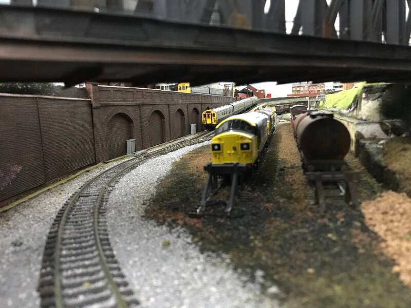 The relocation of the depot has allowed me the space to incorporate a small subtle town scene with a track tunnel where I can run a 2car passenger DMU (Diesel Multiple Unit ) off scene and hidden in the tunnel. Initially this opens the layout for more bridges and viaducts with a fitting narrative to the layout.