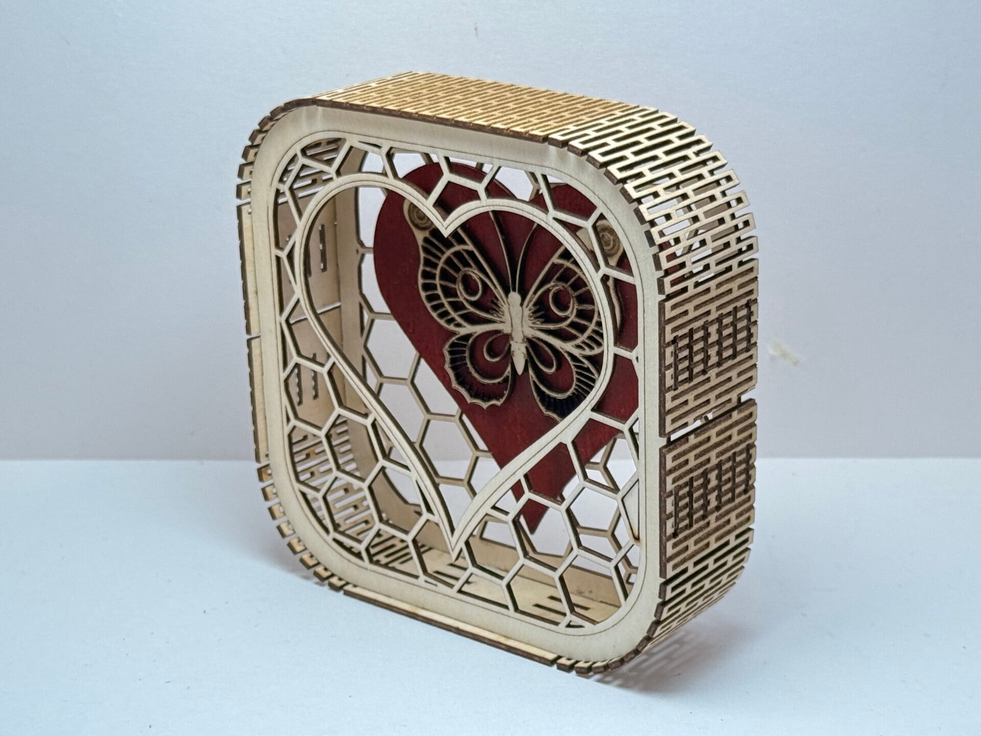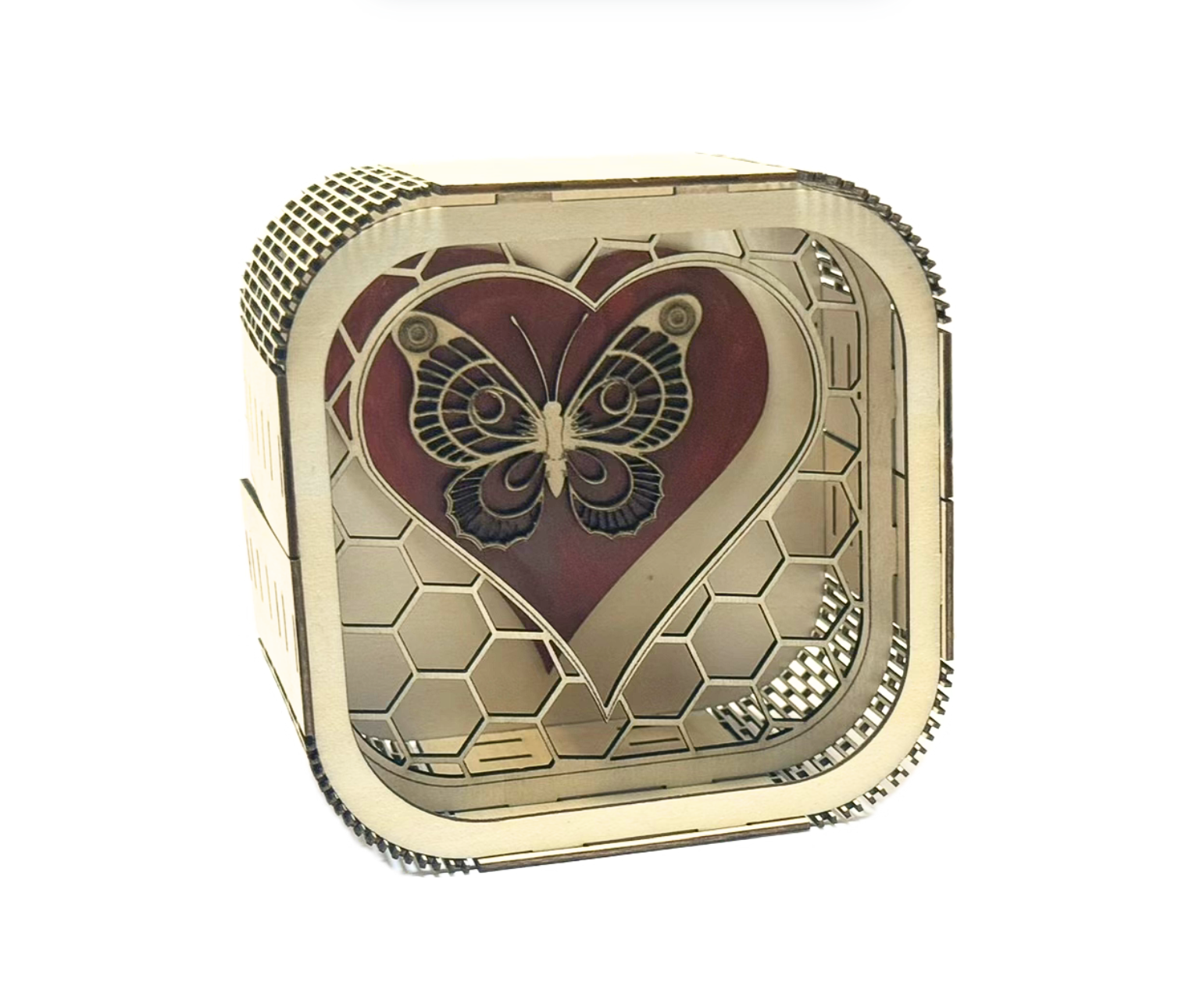 Butterfly honey heart box. Laser-cut craft.